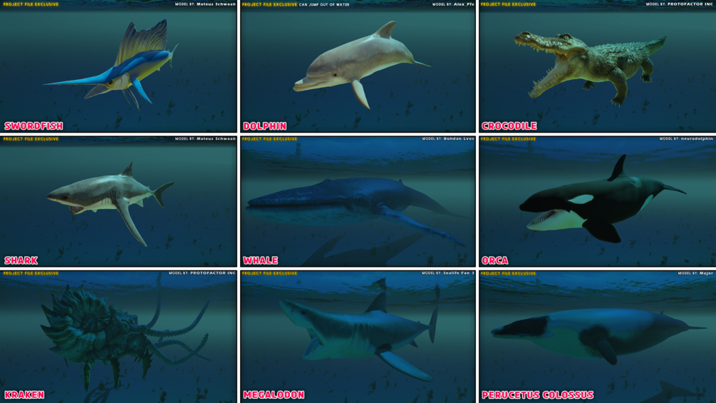 - Exclusive: Anglerfish, Swordfish, Crocodile, Orca, Megalodon, Perucetus Colossus