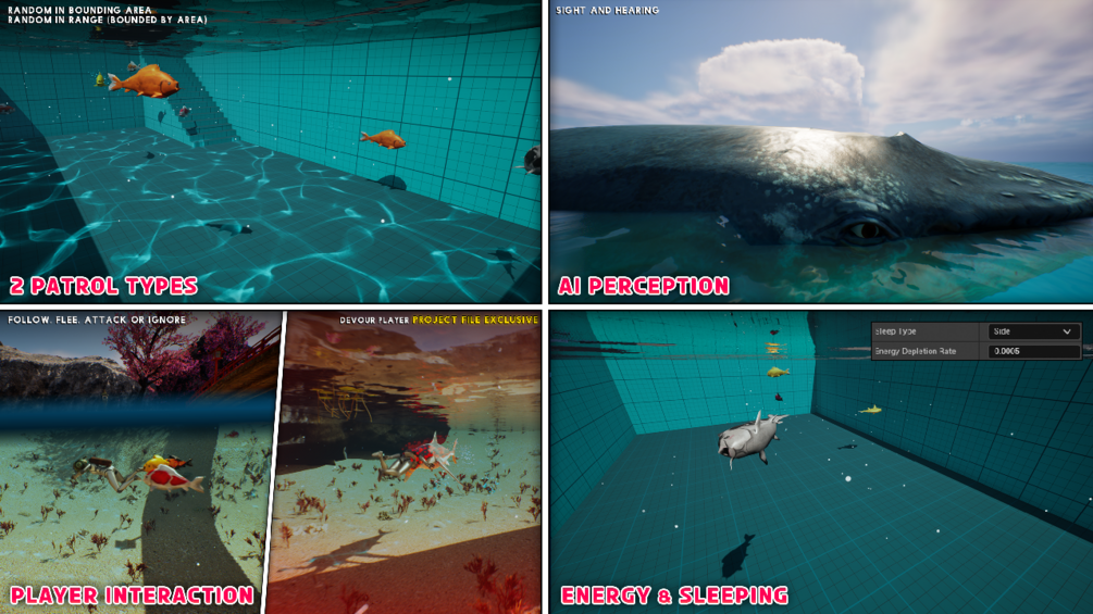 Advanced fish AI and controllable fish pawns in Unreal Engine 5.