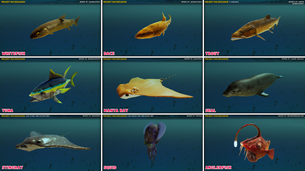 - Exclusive: Whitefish, Dace, Tuna, Manta Ray, Seal, Whale